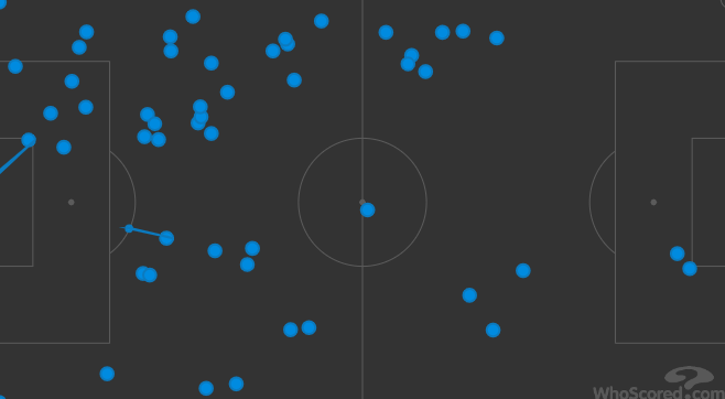 Compare that to the Everton game where a Gundo/Rodri combo was used and it’s a different tale. Here the Belgian recorded 40 passes, 2 key passes, completed 2 dribbles, and had only 52 touches.