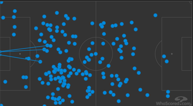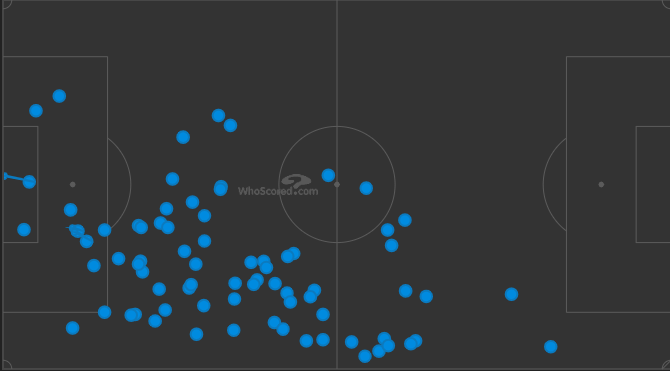 The touch map he produced from this game only speaks to add more evidence to this role, as he recorded the majority of his touches in that ‘inside winger’ position.